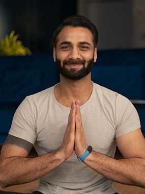 En Hatha Yoga, on associe le contrôle du souffle (pranayama), à des postures physiques (asanas), à des mantras et à de la méditation.